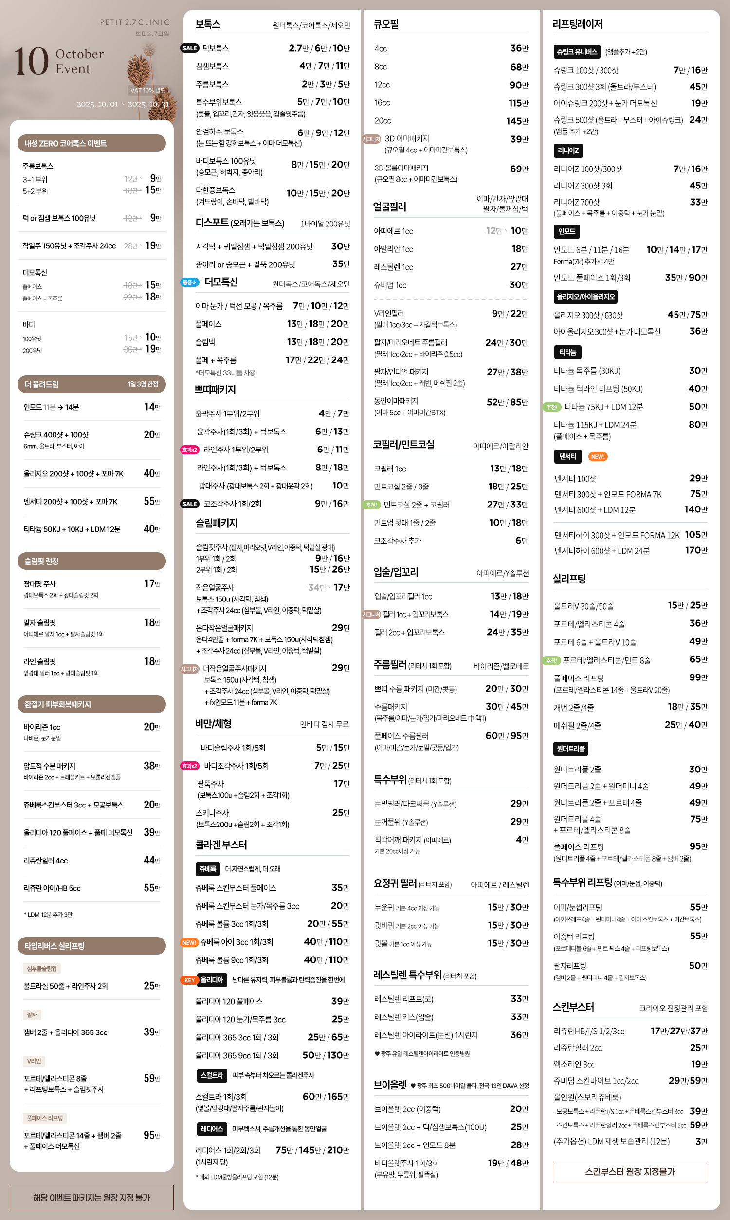 쁘띠2.7에는 다양한 종류의 스킨부스터가 있습니다.